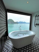 Yesterday, we departed Hanoi for an overnight cruise in Hạ Long Bay. We were collected from our hotel and joined the bus with people from Los Angeles and Mexico City. Once we arrived at the port at the entrance to the bay, we were collected by a tender boat for a 40 minute trip to the Genesis Regal Cruise boat. Mum, you guessed it, I was very unwell after this.