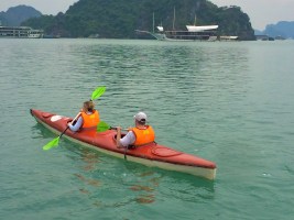 Pat and I enjoyed the peace and night time view of the bay and surrounding boats from our private deck while we finished our bottle of wine – life is good! However, we had to be up for Thái cực quyền (Tai Chi) at 6:00am on the top deck – it was very chilly. Tai Chi was followed by breakfast, which was followed by kayaking in the bay at 7:30am. So productive!