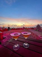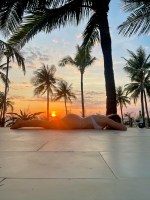 After lunch, we walked down to Ocsen, a sunset-facing beach club, with orange beanbags and tables spread across the sand, a DJ and amazing cocktails. Pat set up a time-lapse for the sunset and we chatted until the sun went down. After this, we took another Grab to the Phú Quốc Night Markets – literally mayhem. I have never seen so much seafood, or so many rolled-ice cream stands in my life. Anyway, we walked around and I settled for a corn cob on a stick, while Pat chose a chip on a stick, and we both enjoyed ice cream. Yum.