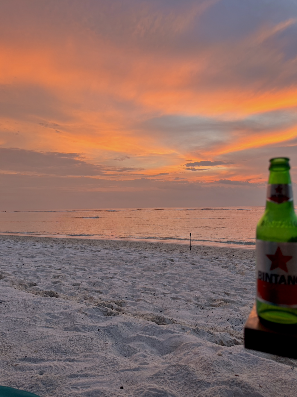 We were supposed to wake up early and seize the morning. Not sure what happened there—I might be to blame, oops! But no worries, the weather was perfect, and we set off to Tanjung Aan Beach, which was undoubtedly the best beach we’d seen in Indonesia—crystal-clear water with waves in the distance, reachable only by boat. We relaxed on sunbeds (in the shade—we weren’t getting burnt) before I decided to try surfing. I rented a board and took the boat out. Meanwhile, Cass got swarmed by locals selling all kinds of bracelets (a common occurrence in Indonesia). She always used to say that if they’re persistent enough, “I’ll cave in and buy something,” and that’s exactly what happened! To her defence, Tina, the little girl selling the bracelets was extremely persistent, she even sat next to Cass almost the entire hour and a half I was surfing. When I came back from the water, I found a lovely little pink bracelet around Cass’s wrist. I wasn’t surprised. She told me it was only 96 Australian cents.