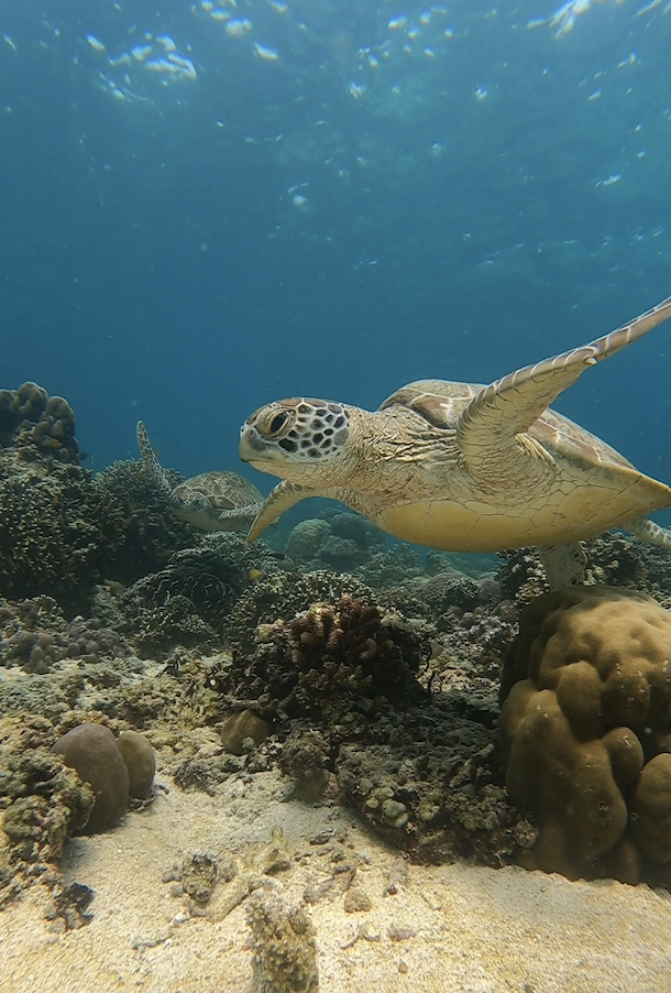 Cass finally started feeling better for the last full day we were on the island. So, what better time than to go on a snorkeling trip? We boarded a boat and set sail, visiting three snorkeling spots and stopping off at two nearby islands, Gili Air and Gili Meno. The second snorkeling spot was the best—we saw two turtles! A protected species among the Gili islands, and on Gili Meno, there’s a turtle sanctuary that cares for turtles until they are 9 months old and ready to be released into the wild.