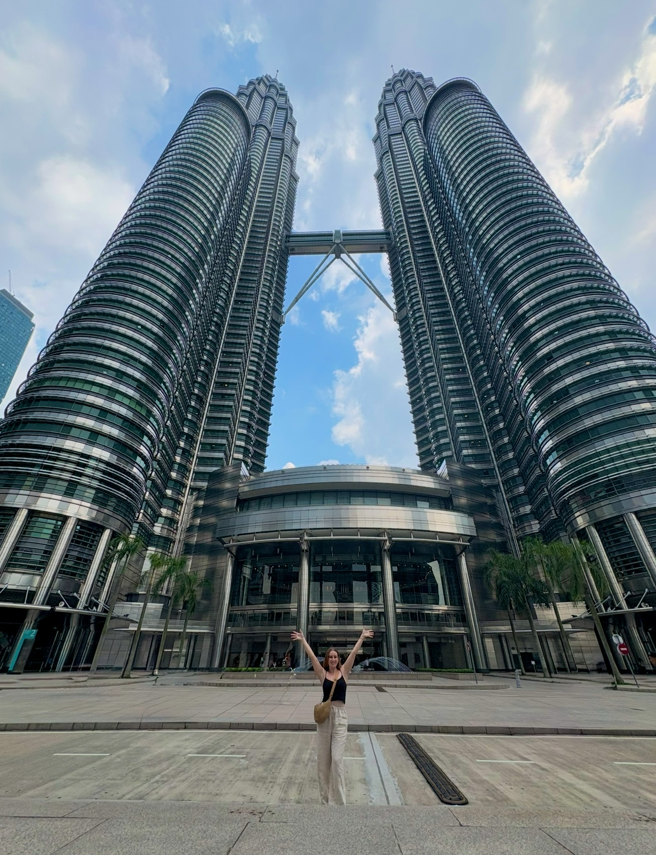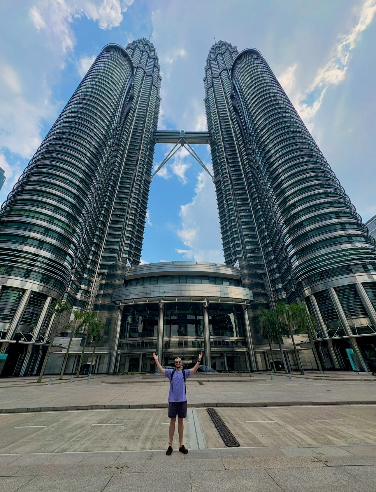We took the rest of the day easy (a common theme, you’ll find), binge-watching Running Point on Netflix before heading to the Petronas Towers to search for Pat’s birthday present: a new pair of Ray-Bans. Up close, the Towers are incredible, and are arguably KL’s most iconic landmark, still holding the title of the tallest twin towers in the world–even surpassing the original World Trade Center towers in New York City! For dinner, we went to a Western restaurant, which I am largely embarrassed to do when travelling in Asia… But, when the only things you can stomach are plain pizza, potatoes, or bread, there really aren’t many other options!