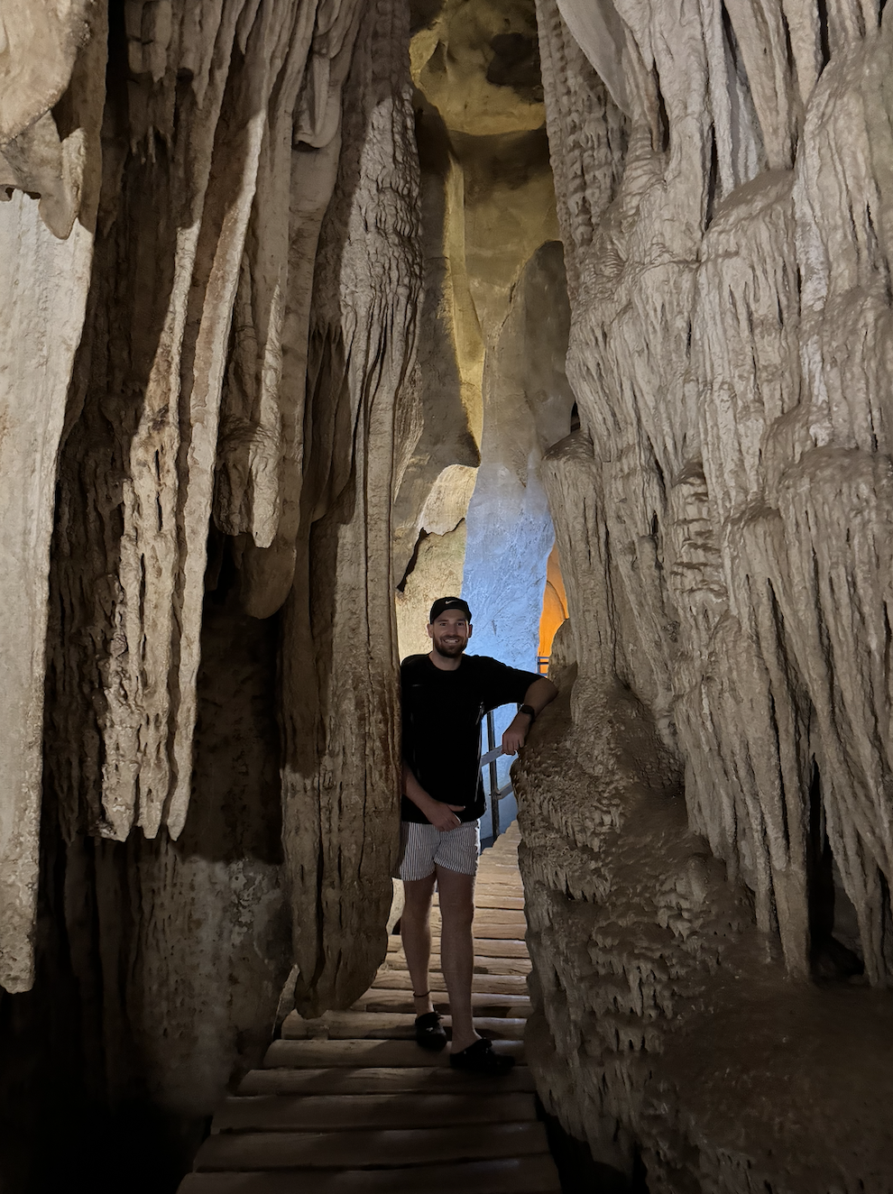 We wanted to go back to Railay Beach to properly explore the surroundings, because the brief stop the day before just didn’t quite cut it. Railay is only accessible by boat, so after the gym, we grabbed a Grab to the pier to get another longtail boat (this time, we didn’t have a choice). It was only a 30-minute boat ride, so it was bearable. We walked around the peninsula and took our time store-hopping, swimming, relaxing, and exploring. We paid an expensive entry fee to Phra Nang Nai (Diamond Cave), and explored its small interior, observing the tiny bats living on the ceiling. We strolled through the very small but bustling town in Railay and stopped for a couple of cocktails before catching the boat back to the pier. I made an error here, because I thought we were getting off at Ao Nang Pier to meet Noah for dinner, but it was not… We were stranded in the middle of nowhere (meaning like 15 minutes between Krabi Town and Ao Nang), so we tried to get a motorbike to drop us in Ao Nang, but there was only one available. So, I got on the motorbike and Pat got on the local bus. True chivalry… and an adventure, perhaps.