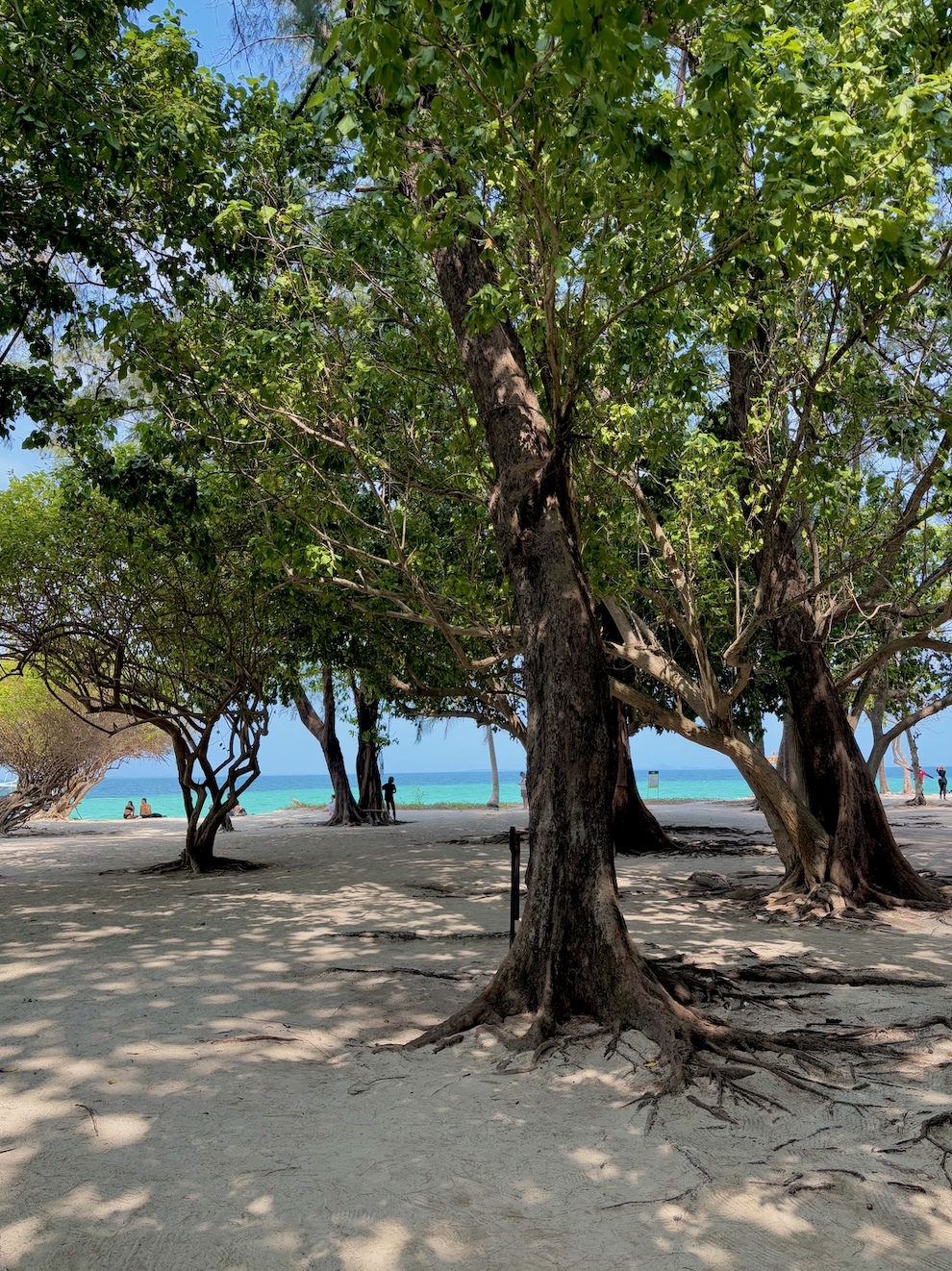 Given we were behind schedule, we were pretty rushed getting through the stops on the itinerary. Our first destination was Phra Nang Cave Beach, located in Railay Beach—a stunning spot with towering limestone cliffs and emerald green water. We had about thirty minutes to swim and soak in the beauty before dashing back to the boat for another round of “who will cop the most water?” Spoiler alert: it was me. Every time. Next, we cruised to Ko Kai (aka Chicken Island), named after the rock formation that resembles a chicken’s head. At low tide, a sandbar connects Chicken Island to Koh Tup (Tub Island), so we basically ticked off two stops in one and had around an hour to explore. Pat briefly swam while I read Harry Potter (because I am re-reading the series before I get to Harry Potter World in the UK). Lastly, we arrived at Koh Poda, our favourite of all the islands–big enough for large trees and lush greenery, and small enough to feel like a mini paradise. We enjoyed a delicious local Thai lunch here: green curry, massaman curry, fried chicken, and rice. We spent the hour chatting to Noah and learning the ways of each other’s home countries, before heading back to Ao Nang and then Krabi Town.