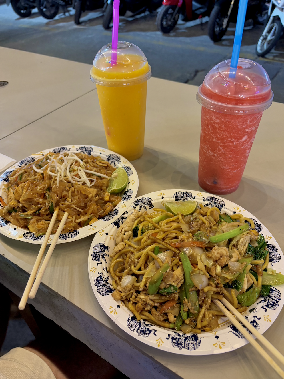 We intended to detour to the Big Buddha for sunset (literally a giant seated Maravija Buddha statue atop Nakkerd Hill in Phuket), but the site has been closed indefinitely for quite some time, so our plans were interrupted. Instead, we finished walking the Old Town streets and headed back to the chaotic Patong for dinner. We ventured away from Bangla Road to Malin Markets and selected chicken yellow noodles and pad thai for dinner… It was average.