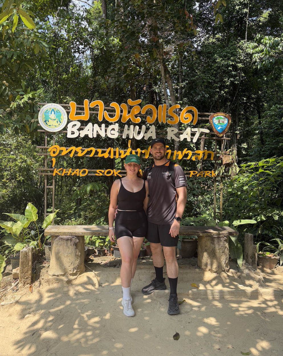 After a much more comfortable bus ride, we arrived at Khao Sok Riverside Cottages on 27 March for a much-needed slower and quieter stay. Khao Sok National Park, located in southern Thailand, wasn’t a far trip for us from Phuket. We wanted to explore the vast rainforest–its wildlife, tranquility, and natural beauty. Our accommodation was a cute little cottage, perched on the riverside in Khao Sok, surrounded by lush greenery, some gecko friends, and lots of mosquitos. Luckily, we had a stylish mosquito net around the bed to protect us at night time. After eating a lovely Thai lunch at the hotel’s restaurant, we set up Pat’s iPad screen to watch the Souths game before venturing out for a night canoe ride!