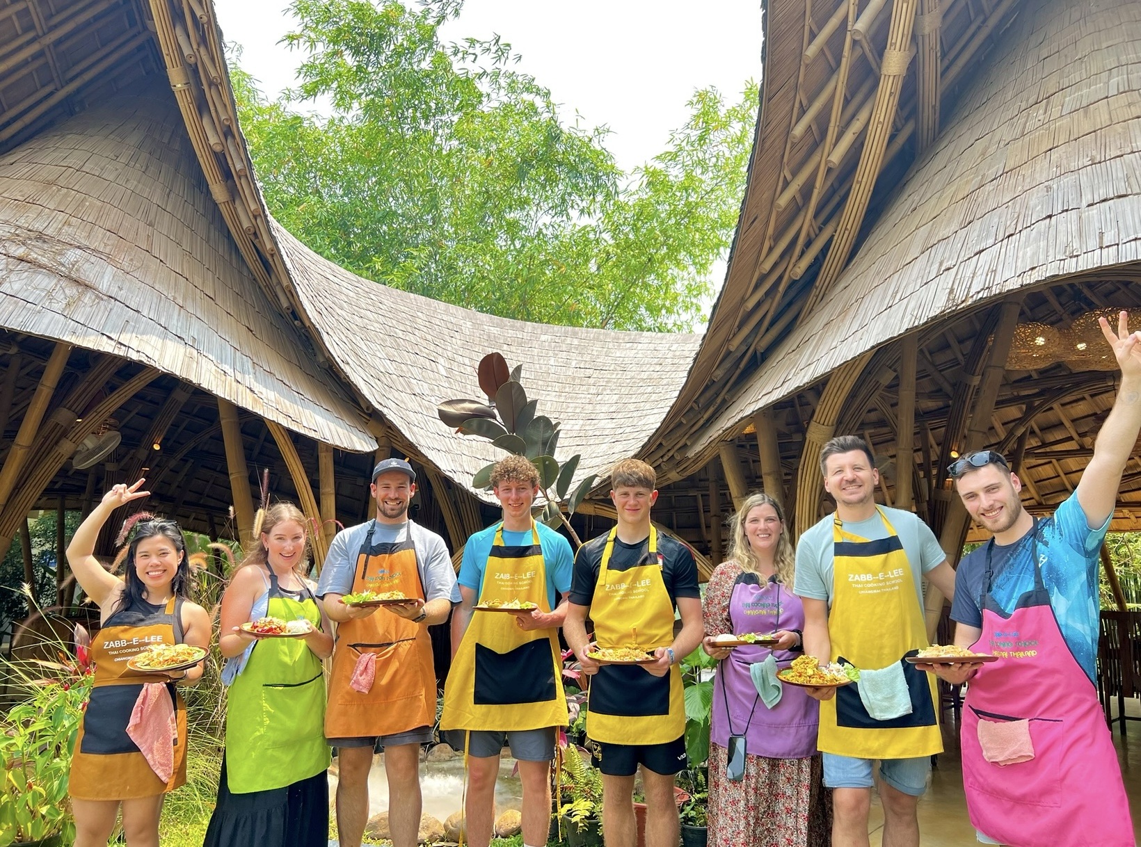 First stop: the local market. Here, our guide explained all the different ingredients used in Thai cooking, including herbs, vegetables, and of course, spices. We gained an insight into the various ways each ingredient is used throughout Thailand’s culinary world—one that we particularly love. After exploring on our own for a little while, and trying famous boba tea, we headed for the cooking school located 14 kilometres from the centre.