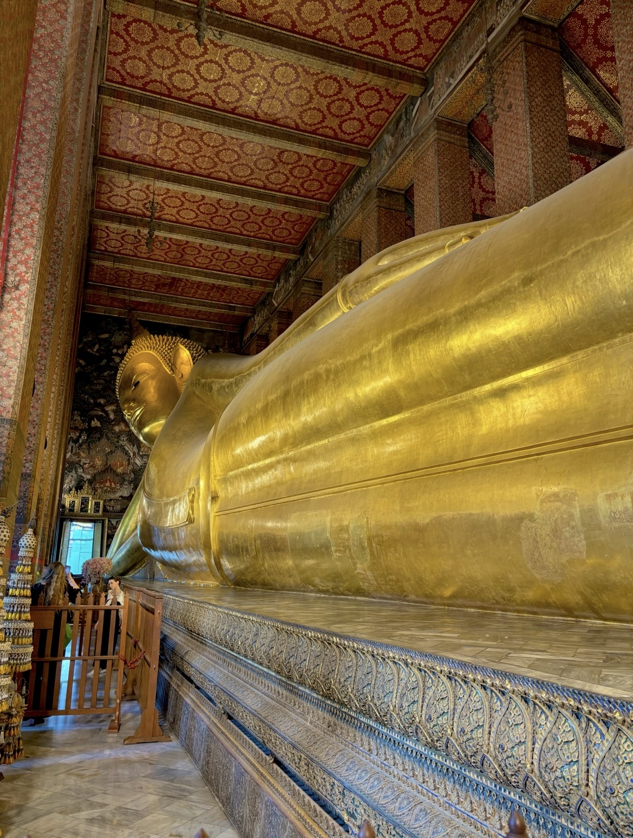 Inside, the Grand Palace lived up to its name. Gold-plated leaves adorned soaring structures with intricate details that left us speechless. We wandered the site for ages. The palace has been an official residence of Thai royalty since 1782 and is still used for royal ceremonies and state functions.