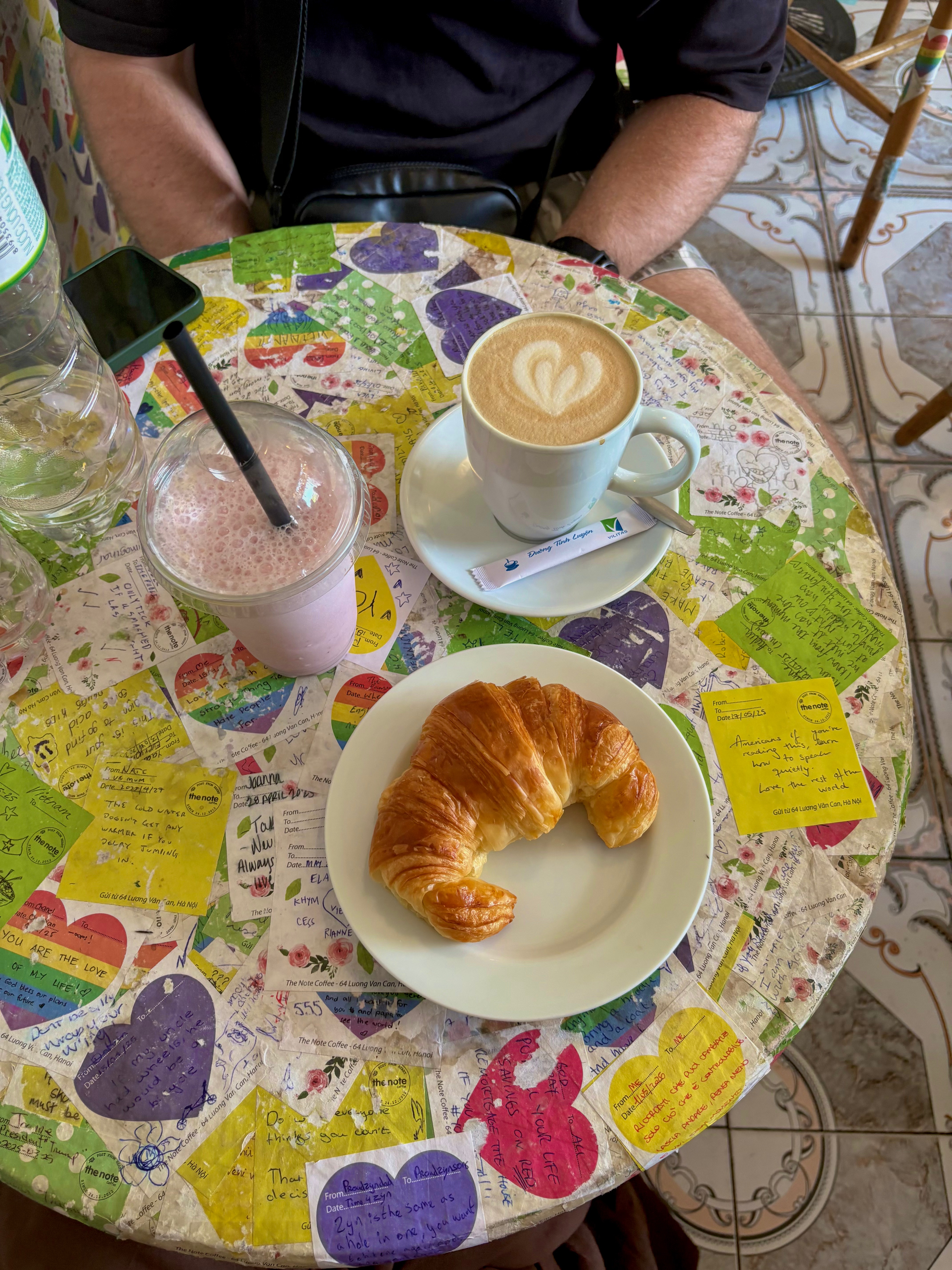 We kicked things off on our first afternoon in Hanoi at The Note Café, a four-storey neon wonder filled top to bottom with colourful sticky notes covering the walls, ceilings, tables, and chairs. Each note reflects a random quote, love letter, inside joke, or doodle from travellers around the world. We left our own messages among millions of others and even spotted a note that some of our besties, Nick and G, had left for us the year before. Our evening was interrupted by the irresistible pull of our bed in our private room at Hanoi Buffalo Hostel. After a romantic detour via the chemist for lozenges and paracetamol, we were out cold.