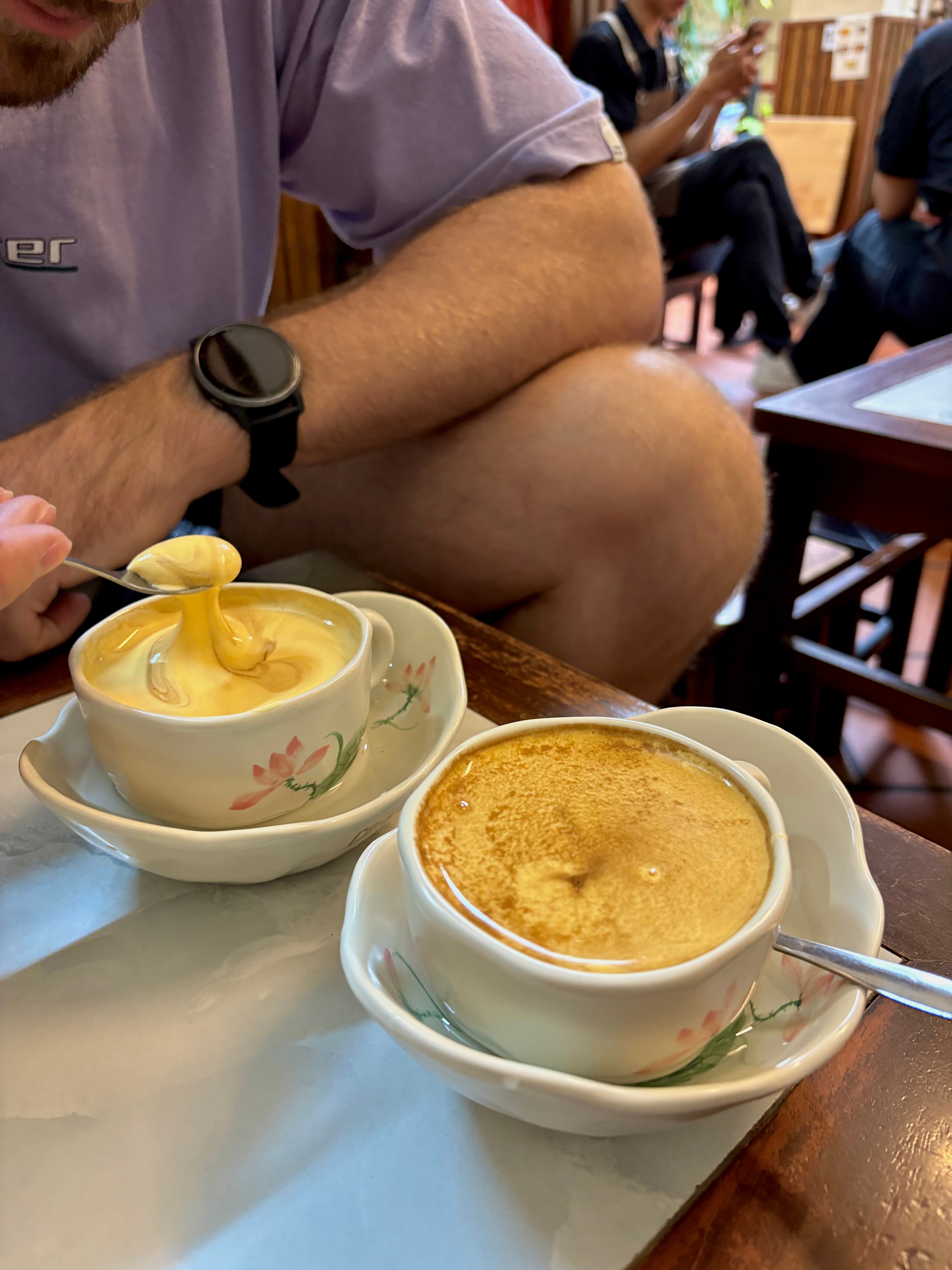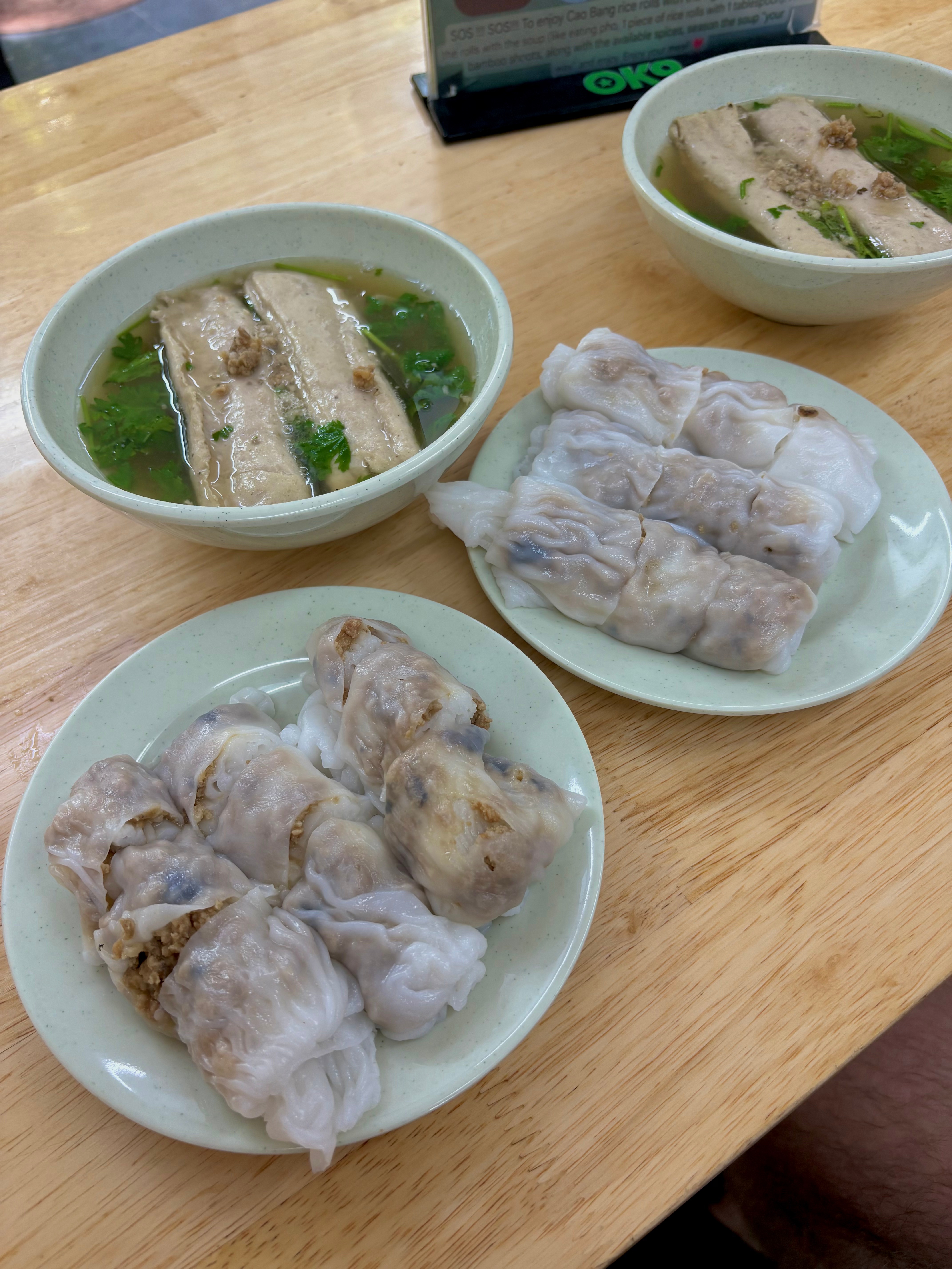 The next morning: iconic egg coffee at the legendary Café Giảng, the place where the drink was invented back in 1946 when there was a shortage of fresh milk. It’s creamy, rich, and honestly deserves its own Michelin star. Sitting on those tiny stools, surrounded by sepia-toned family photos and traditional art, felt like stepping back in time. For brunch, we tried bánh cuốn for the first time, a northern Vietnamese breakfast dish made from thin steamed rice rolls stuffed with minced pork and mushrooms, topped with crispy shallots and served with a tangy dipping sauce. I loved it. It wasn’t Pat’s favourite. You can’t please ‘em all.