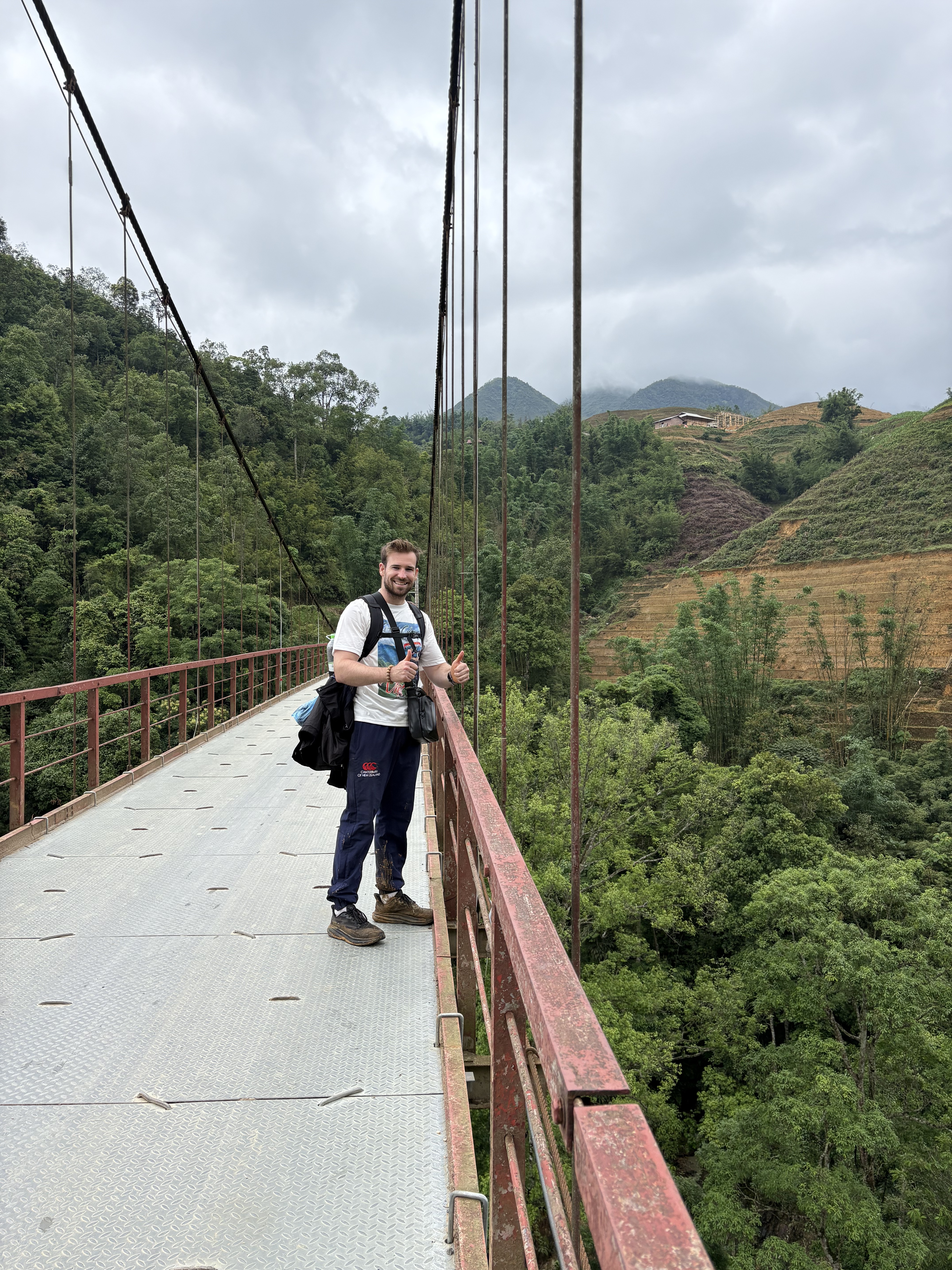 We kicked off trekking from Sa Pa into Mường Hoa Valley, where terraced rice paddies stretched like slippery green staircases down the mountains. We wandered through minority villages, met Black Hmong tribes, and crossed a suspension bridge to Zay Village where we had a hearty lunch served by the locals. When I say “we wandered”, I mean we clutched the arms of locals offering to help us through the terrain, because if it were up to us, we would have slid on our asses for 13km. I have never felt so out of my depth and so humbled in my life. We continued trekking through the damp and muddy terrain, and after many, many hours, we were so thankful for our private room in the homestay. We were cold and wet, soaked to the bone, and the last thing we felt like doing was socialising with the group. But sometimes you don’t get the luxury to choose when on an adventure… Dinner that evening was fresh and delicious with a side of happy water served by our generous Zay hosts.