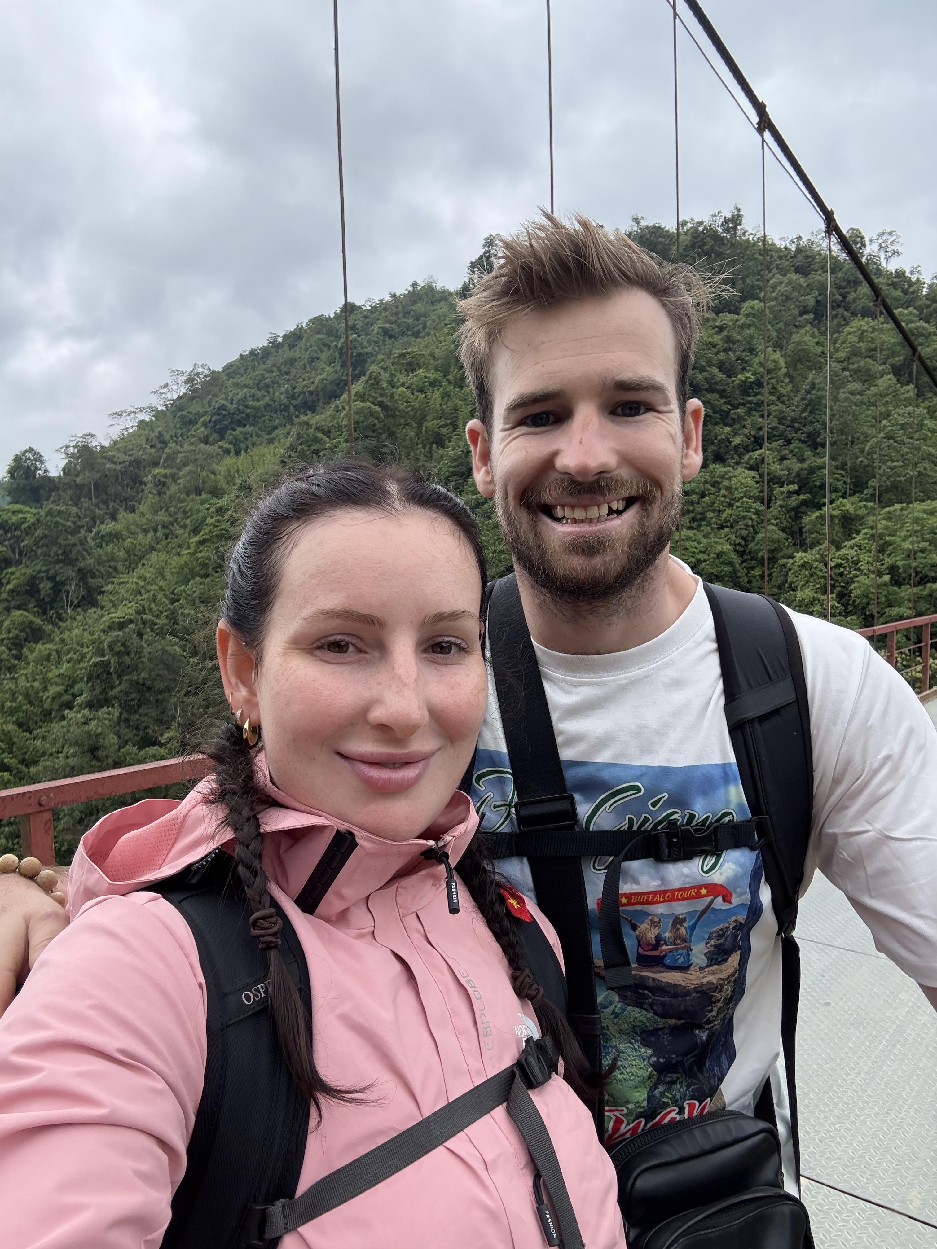 As if the Ha Giang Loop hadn’t already pushed us enough, it was time for a three-day, two-night trek through Sa Pa. Northern Vietnam isn’t exactly a hop, skip, and jump away, so it made sense to “hit two targets with one arrow.” That said, between sore muscles, torrential rain, and temperatures barely hitting 10°C, we cut the trek short to two days, one night. After a marathon journey from Ha Giang (bus, bus, bus, then sleeper bus), we finally rolled into a hostel at midnight, crammed into a shared dorm with 12 already-sleeping strangers, knowing we had an early wake-up to start trekking. Oh, and we hadn’t washed clothes for three days, our big luggage was back in Hanoi, and I was in sneakers rather than proper hiking shoes. Pat is always so much better at dealing with these types of things! lol