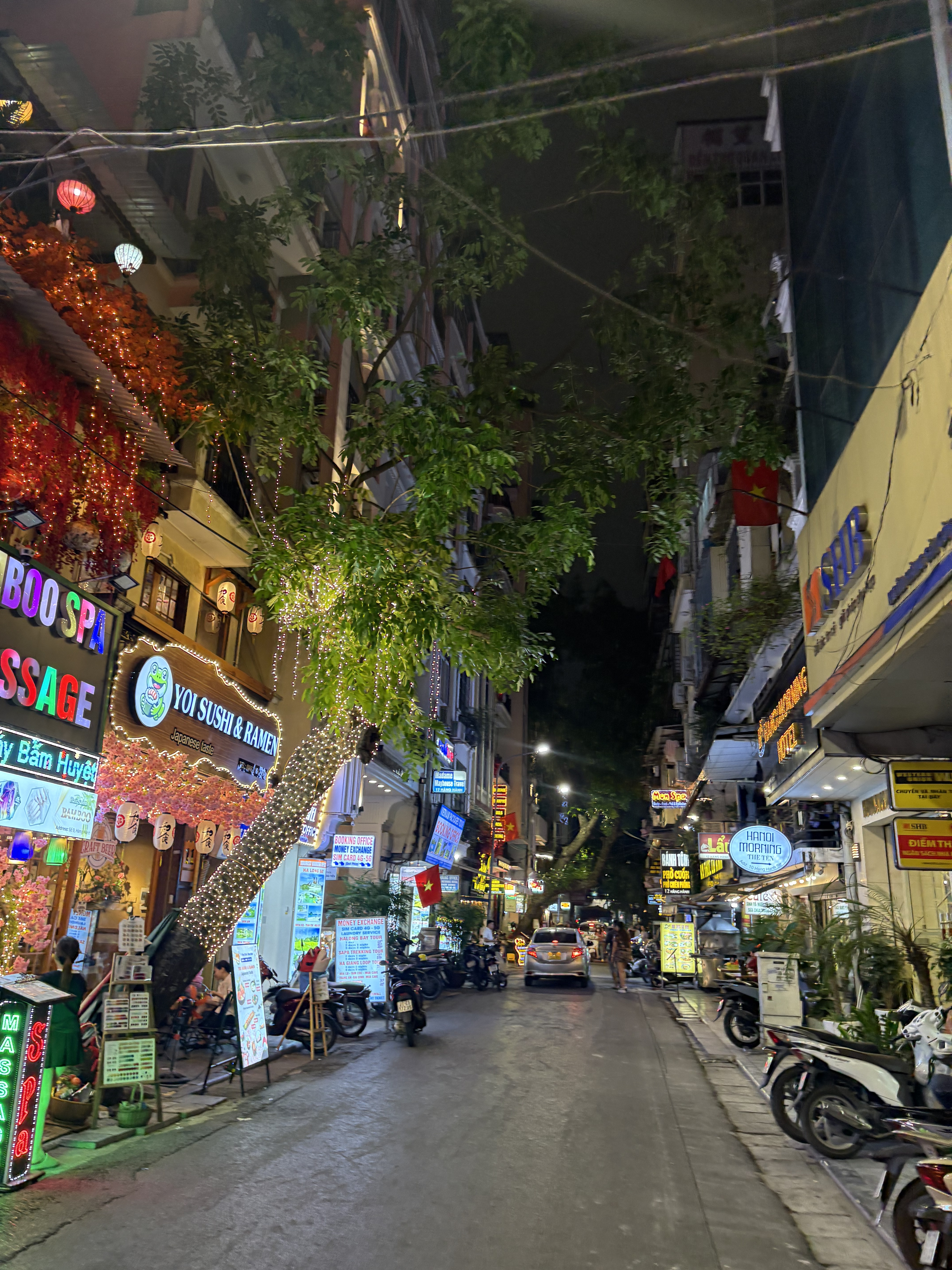We spent the rest of the day wandering Hanoi’s old streets, particularly Hàng Bạc and Hàng Gai, hunting for a puffer jacket for our upcoming mountain adventure. It needed to be warm, waterproof, and pink, which was apparently an impossible combination.